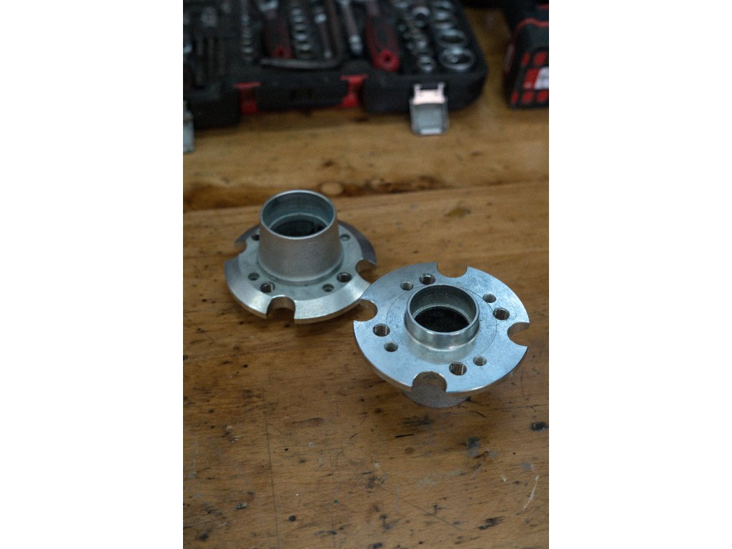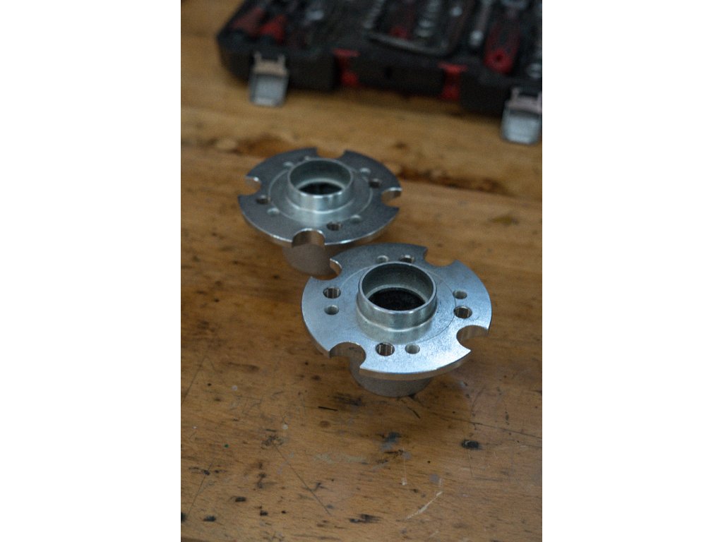 Odlehčené náboje na přední nápravu vozidla s upravenou roztečí šroubů. Vhodné na vozy Škoda 1000 až Škoda 136